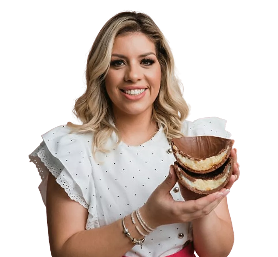 Tudo o que ensino no curso são receitas que eu mesma comercializo, testadas no dia a dia, com alto potencial de venda. Você não vai aprender receitas bonitas só para o Instagram vai aprender a criar produtos incríveis que realmente vendem, que os clientes pedem de novo, e que têm alta margem de lucro.